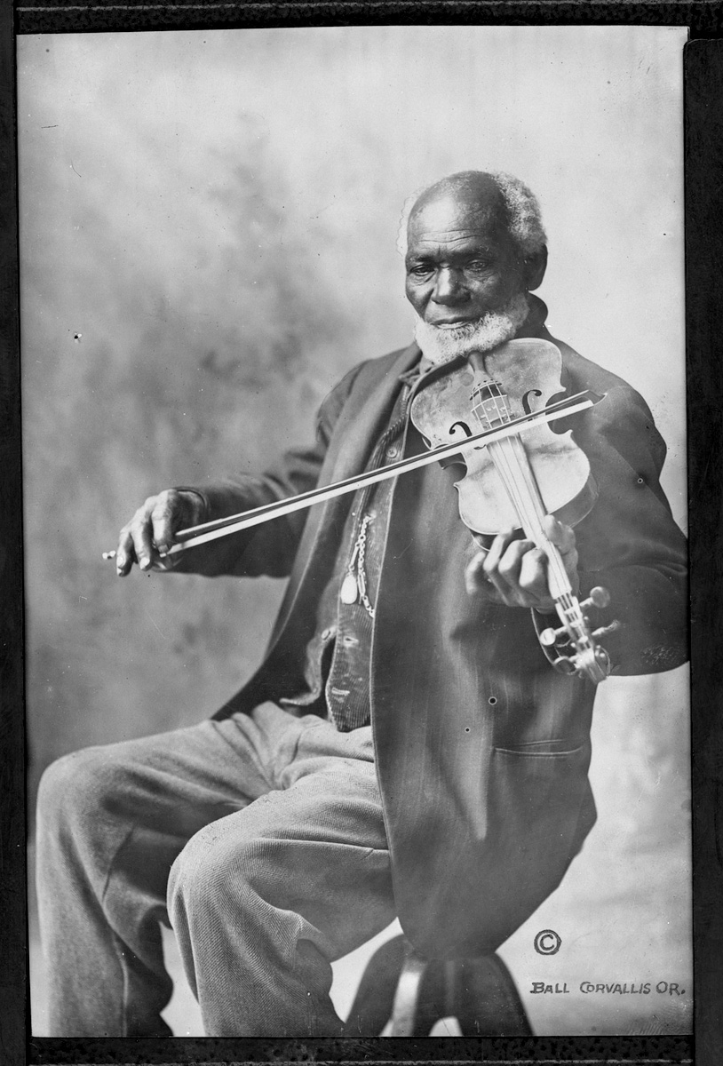 - Fotografía de Louis Southworth. Louis Southworth fue enviado a Oregon como esclavo en la década de 1850 y trabajó en una mina de oro. Tocaba su violín en las escuelas de baile para recaudar dinero con el que comprar su libertad. La cala de Southworth en el condado de Lincoln recibe su nombre por él. (Oregon Historical Society). Fuente: Breaking Chains