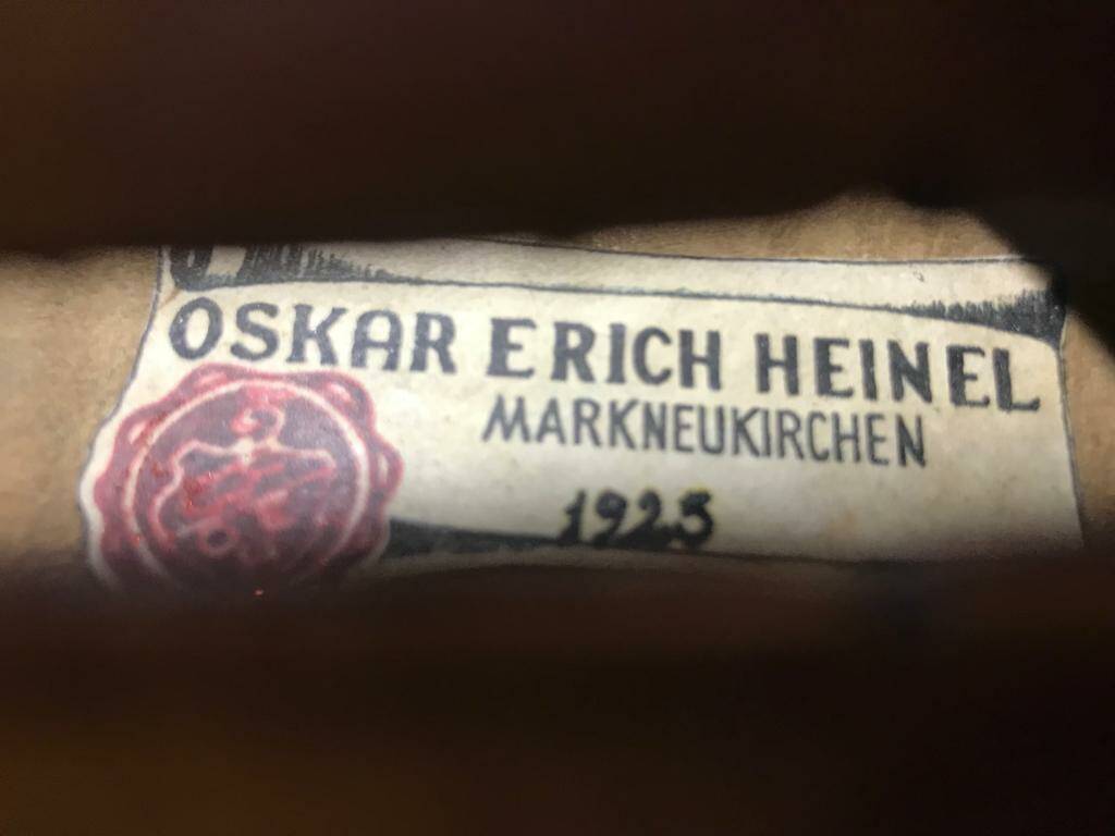 Es un violín aleman hecho por el Luthier Oskar Erich Heinel en 1925
