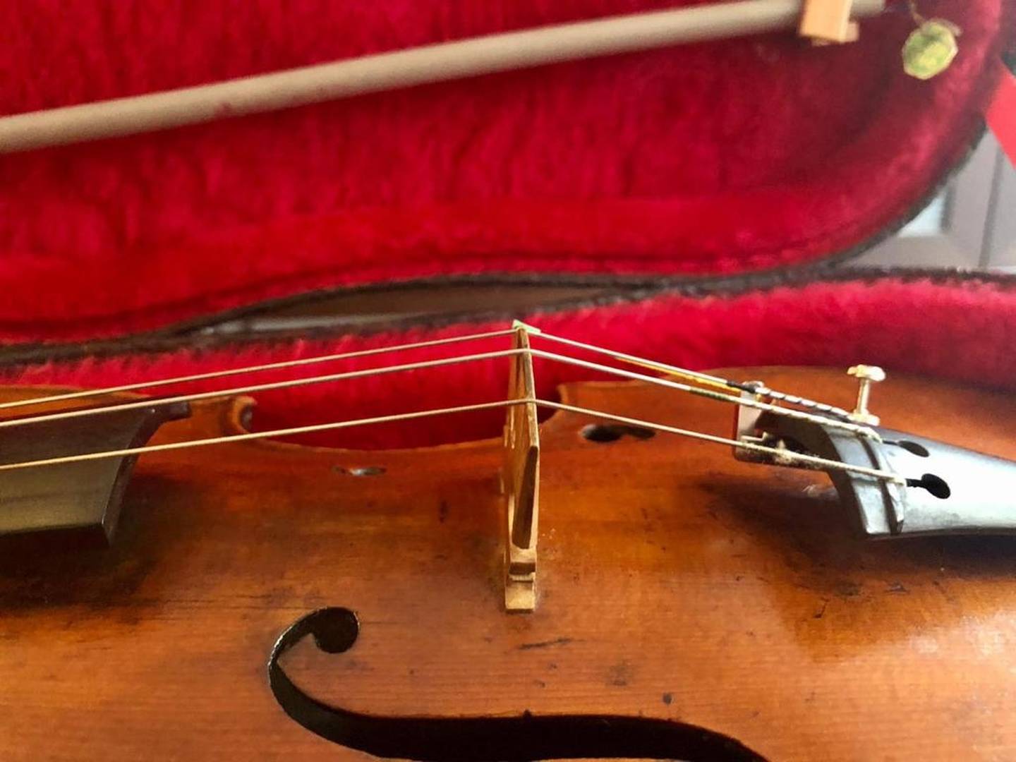 Se vende Violín francés, segunda mitad sXIX, revisado por Luthier. Muy buena construcción; ajustes, fileteado, barniz...valorado en 6000 €. Grietas reparadas en tapa y clavijero. Necesita revisión de clavijas y montaje nuevo (diapasón, puente y alma)