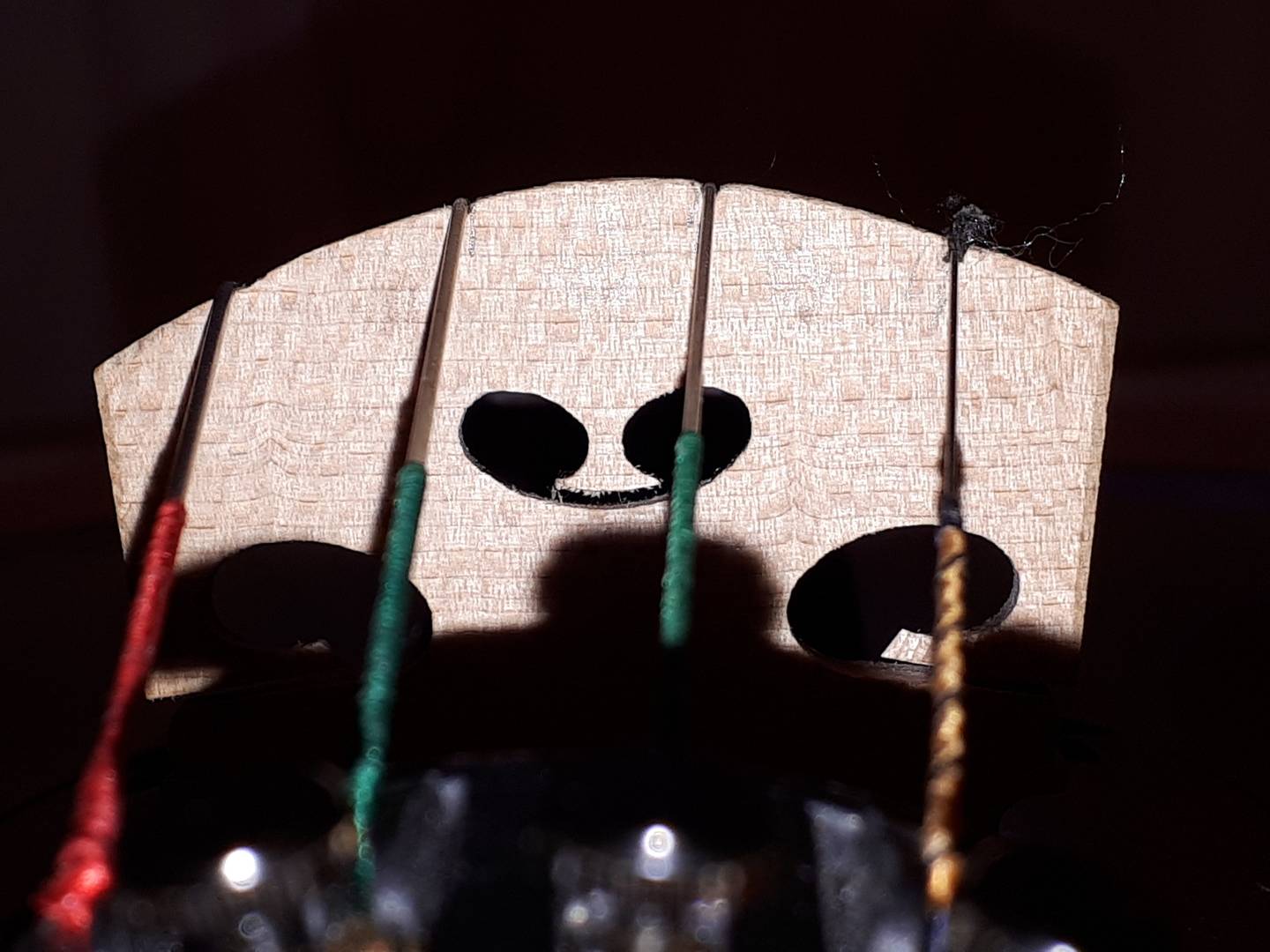 Mi consulta me avergüenza ligeramente pero allá va. Después de 35 años sin tocar una viola decidí enrolarme de nuevo y compré una viola, calidad estudiante y volví las clases y los deberes. Hoy viendo un vídeo me ha parecido que el puente no estaba puesto como el mío. He buscado un poco más y parece que si. Que mi puente podría estar al revés. Midiendo de la tapa al vértice de cada lado del puente tengo en el lado de la cuerda Do 29 mm y en el de la cuerda La 31. Adjuntaria fotos pero no veo como hacerlo.
