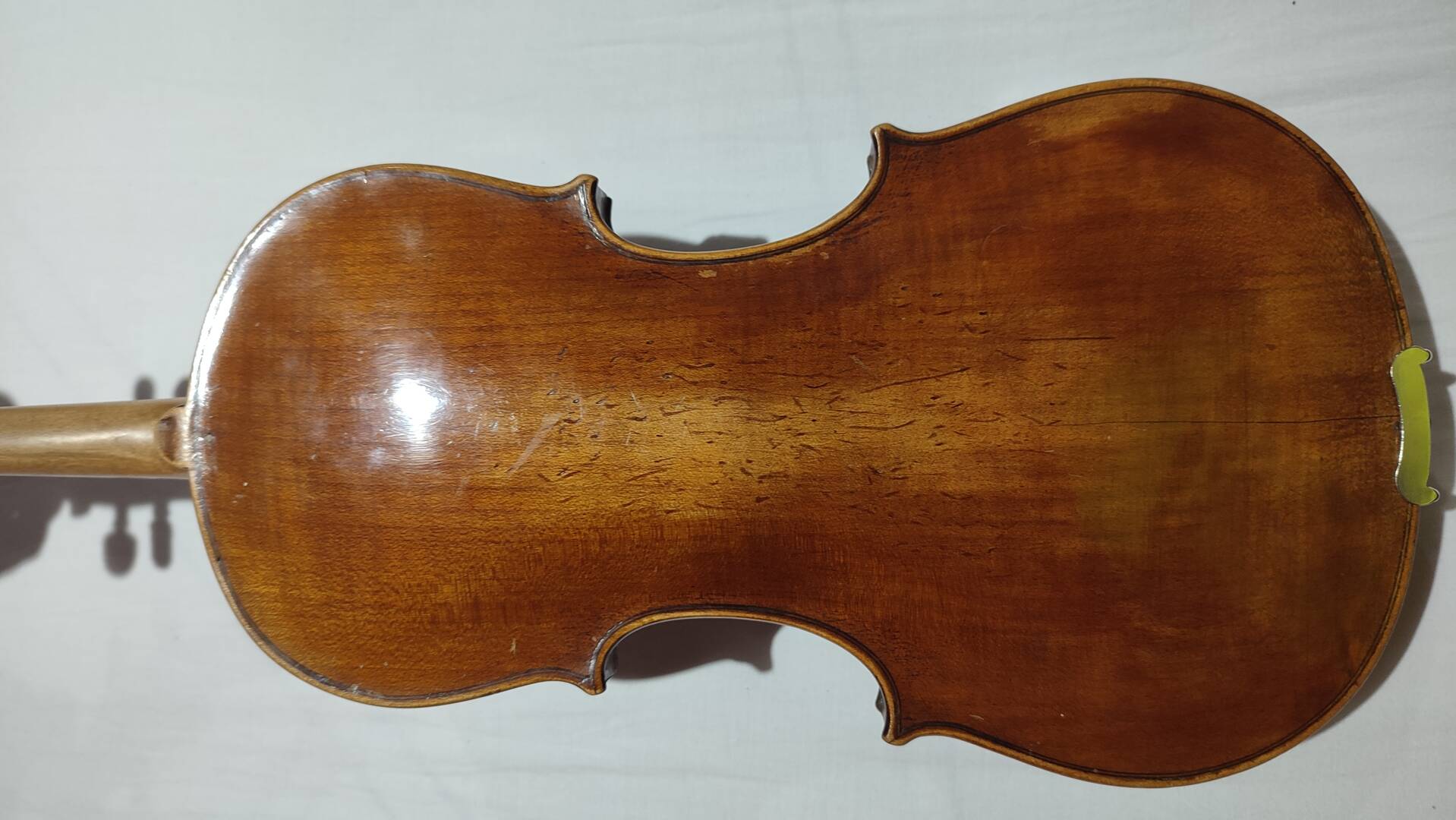 Es un instrumento muy bonito, la verdad. Para estar más seguro, como ya dije, sería interesante verlo en persona. Parece que tienes algunas grietas antiguas en la tapa que sería conveniente revisar su estado.