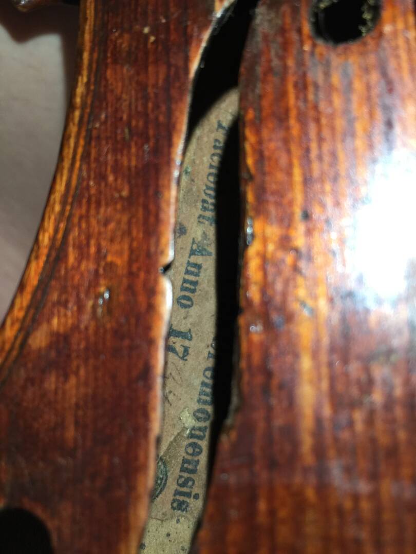El violin tiene en su longitud inferior 35,82 cm. En la etiqueta el numero 34 esta a lápiz de papel.