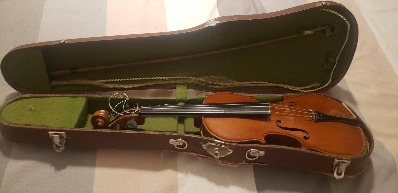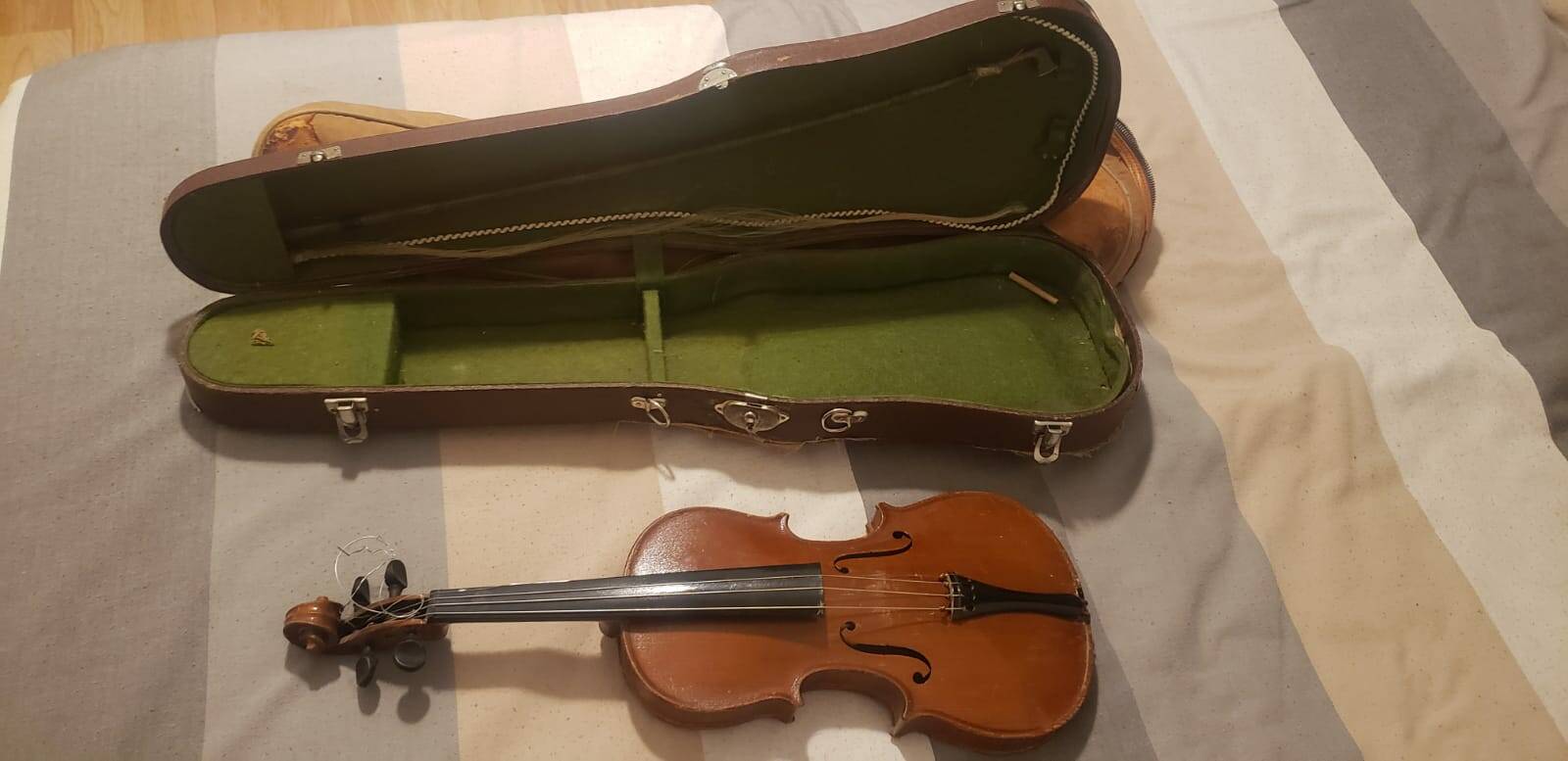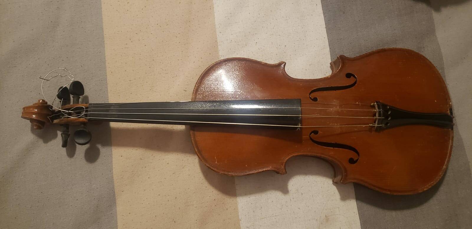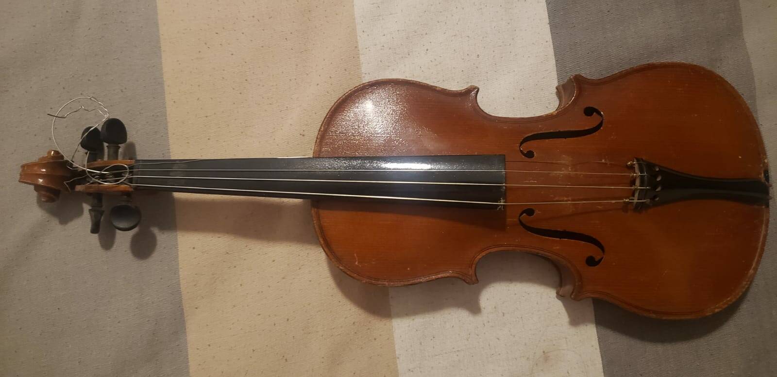 En este caso estamos posiblemente ante un violín relativamente moderno, de principios del siglo XX, hecho en Alemania, como legiblemente pone en la etiqueta del instrumento.