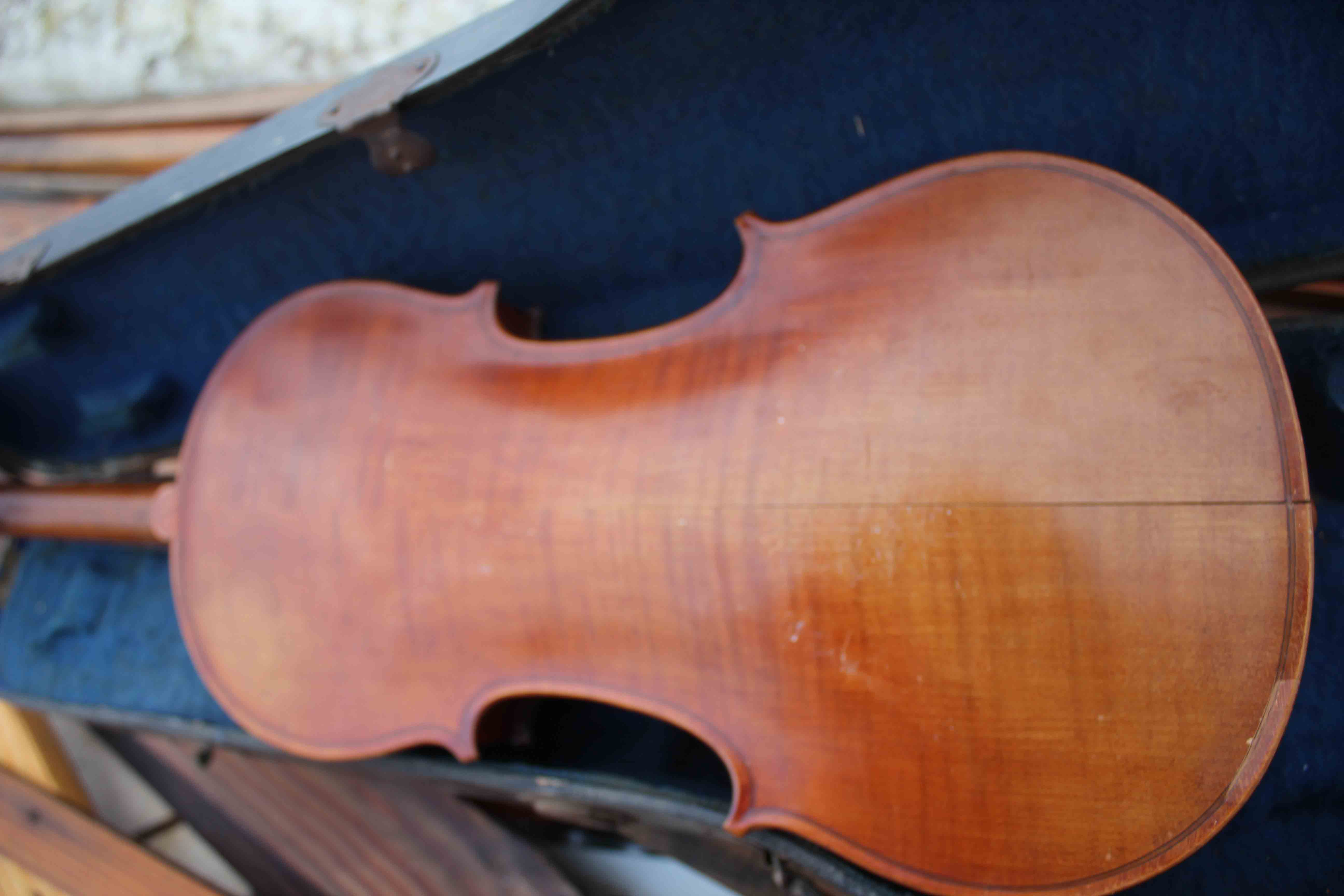 Por las fotos, sin poder asegurarlo completamente, parece un violin francés, de principios del sXX. Posiblemente de alguna manufactura en Mirecourt.