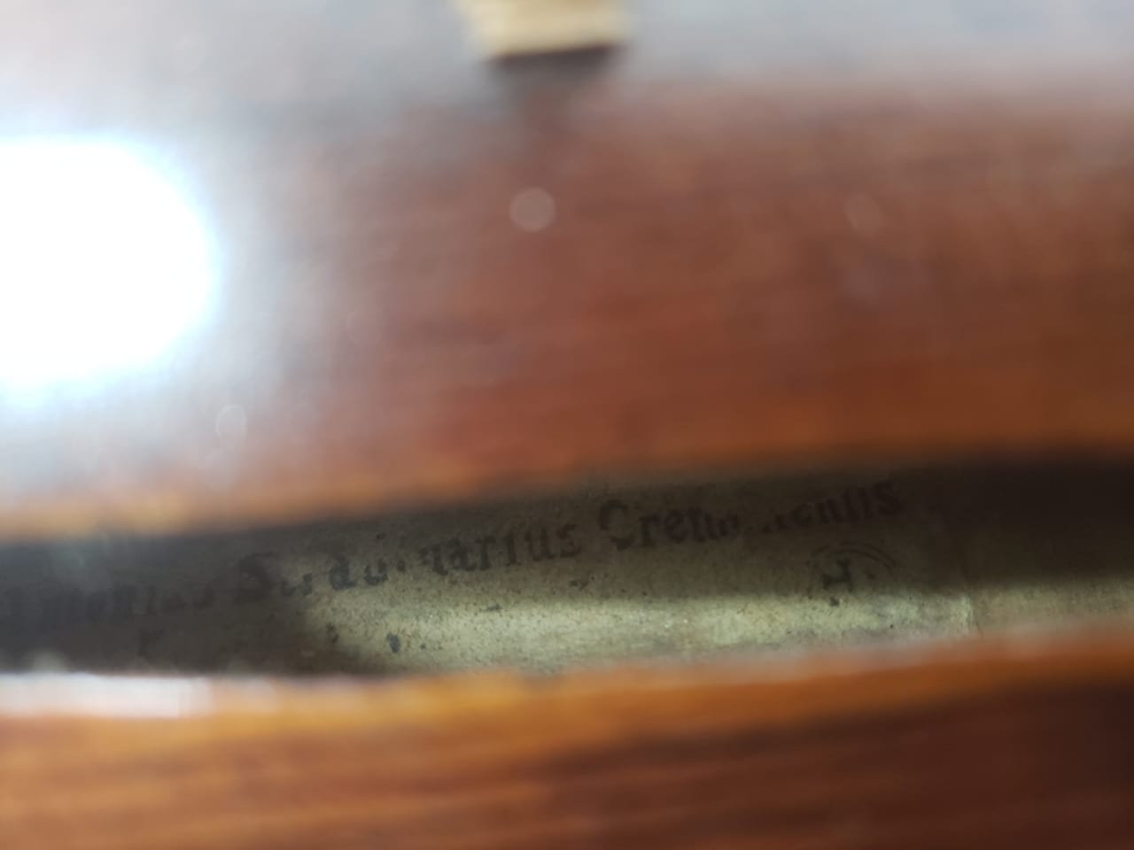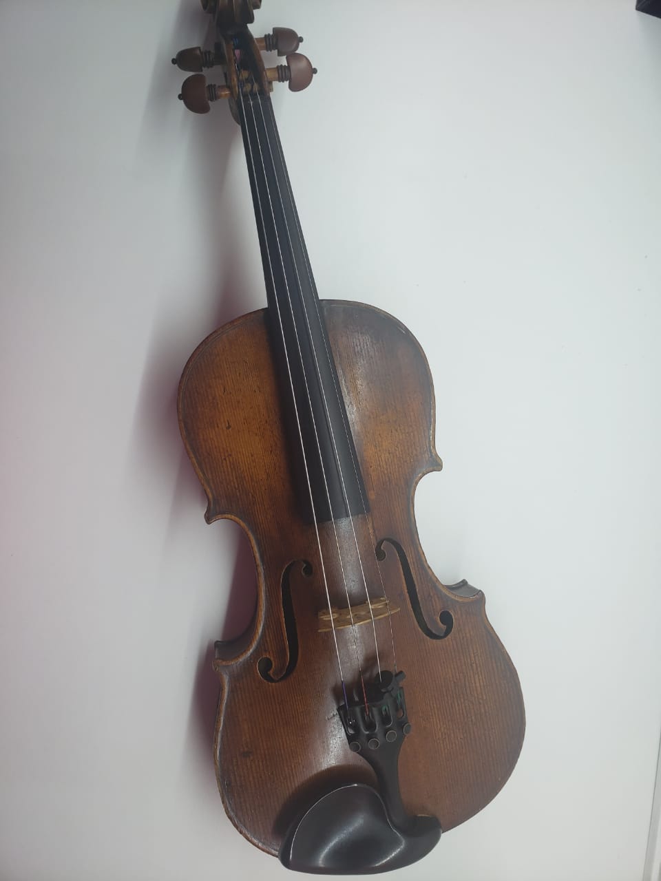 Como te cuenta Jose Catoira, y dentro de las dificultades que supone una identificación mediante fotos, serían necesarias fotos lo más frontales posible de la parte delantera, la trasera, el perfil, y la cabeza del violín. Pero a simple vista tiene toda la pinta del habitual instrumento alemán de fábrica de principios del siglo XX o finales del XIX. Si en la etiqueta pone made in Germany el violin sería posterior a 1920.