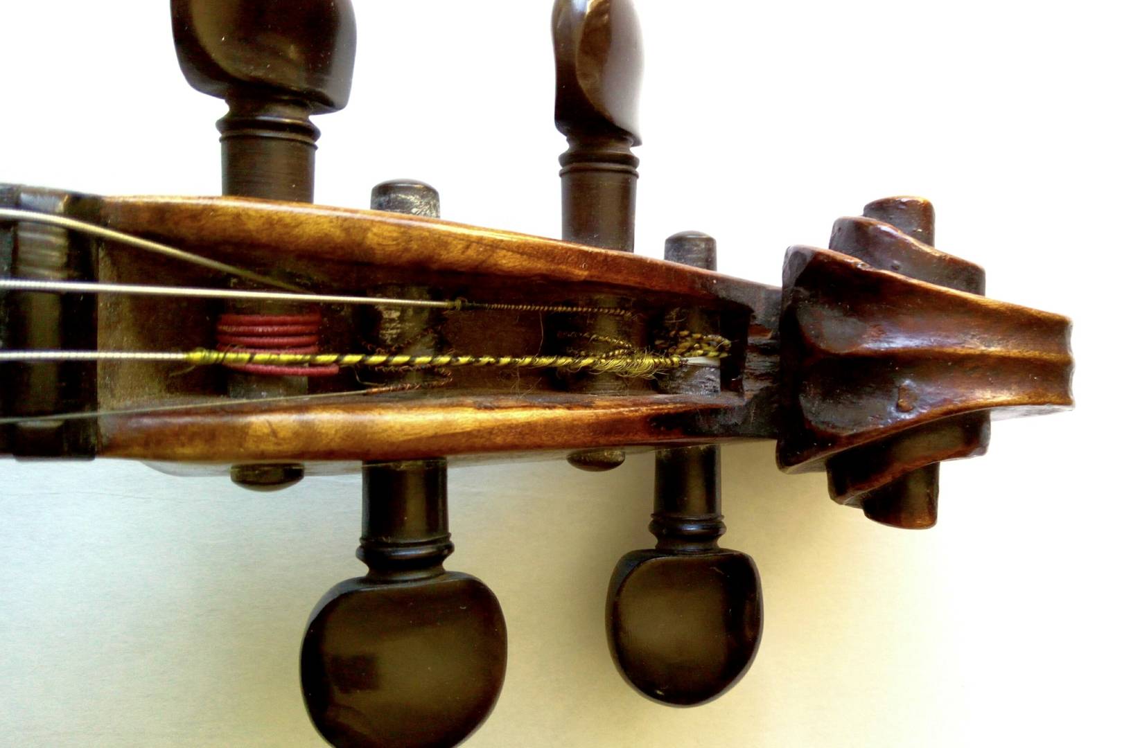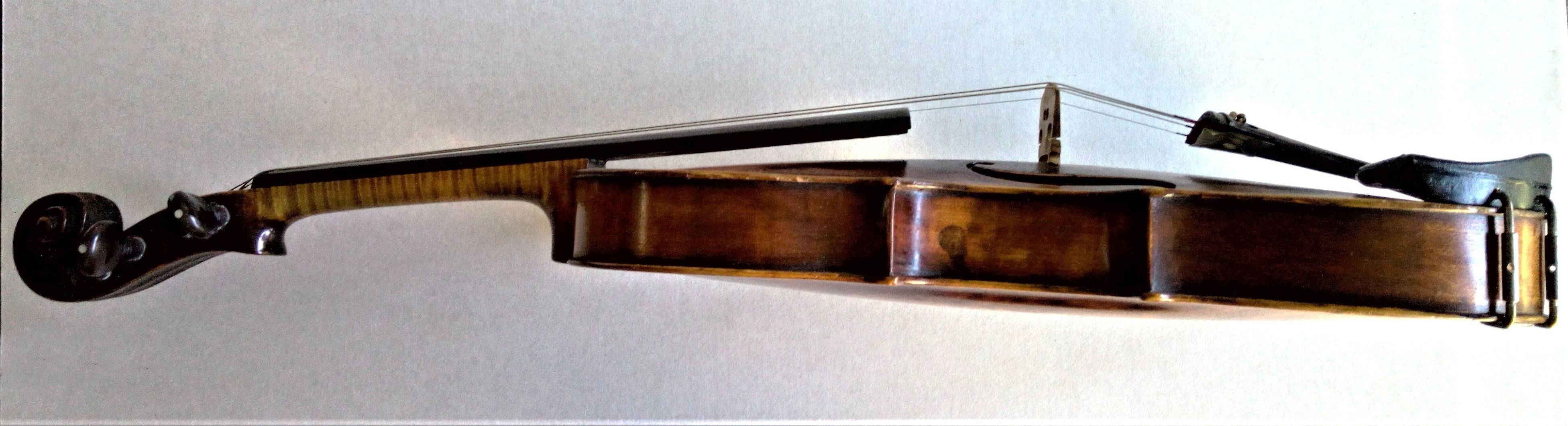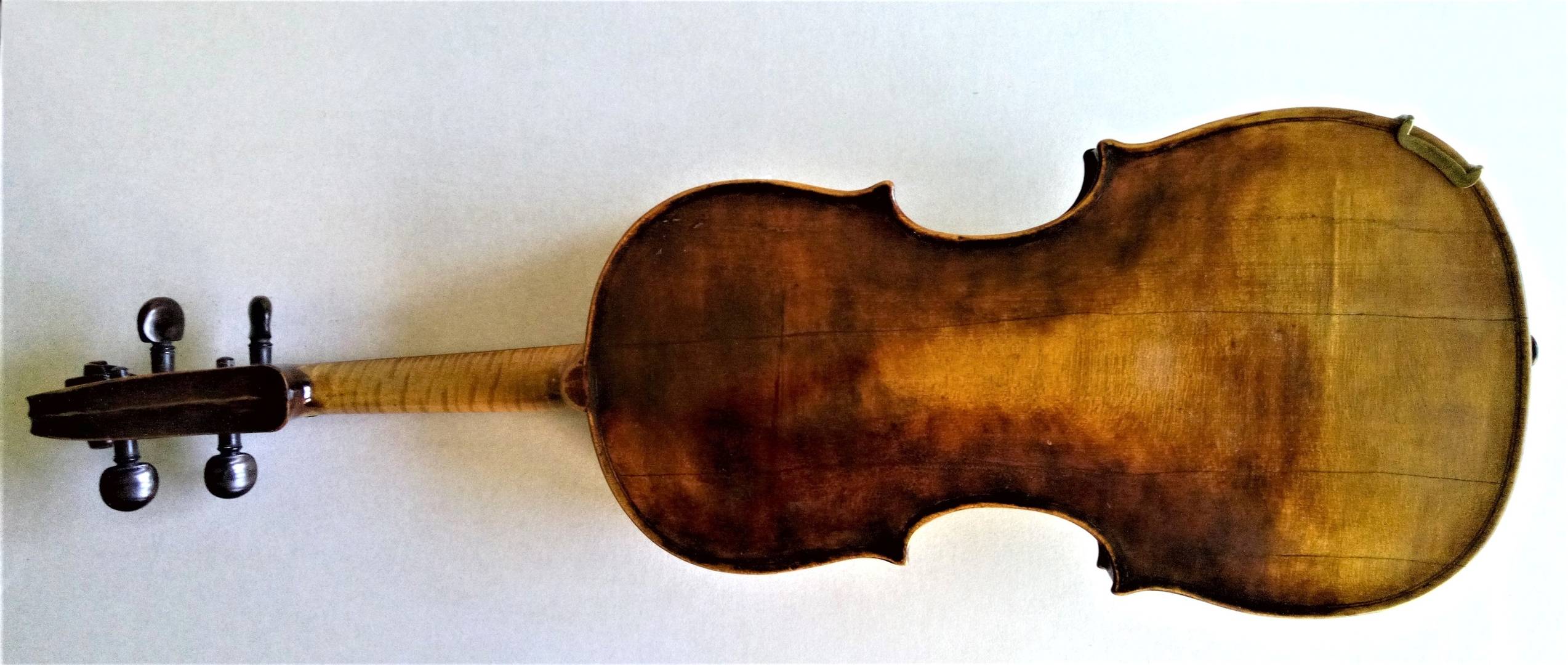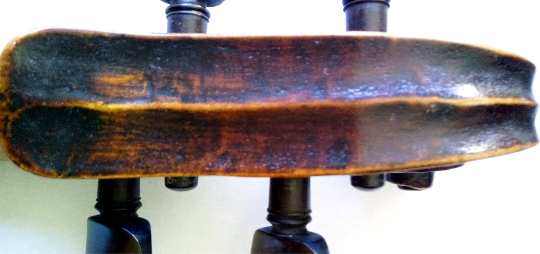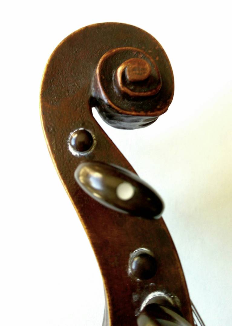 Tengo la sensación de que la voluta no pertenecía originalmente al instrumento, parece un trabajo hecho en la zona de Schoenbach a principios del sXX. Pero como digo, es una opinión muy ligera y sin verlo en persona no puedo opinar en firme.