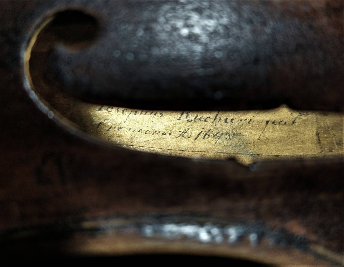 Estimado José, tengo un violín heredado de mi abuelo italiano, cuya etiqueta dice: Iosephus Ruchieri fecit (arriba) Cemona.A.1643 (abajo). He obtenido fotografías para que lo analices. Mi interés es saber si el violín tiene esa antigüedad y toda información que puedas aportar. Desde ya muy agradecido. Saludos.