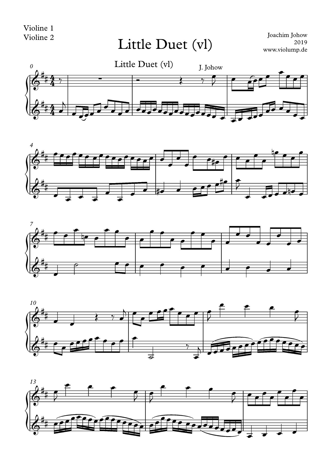 He visto algunas piezas para dos violines en el Crickboom, pero buscaba obras barrocas o clásicas de poca dificultad, Bach, Bertalli, Corelli o similares, no sé si podrías indicarme alguna o algunas de esos niveles.