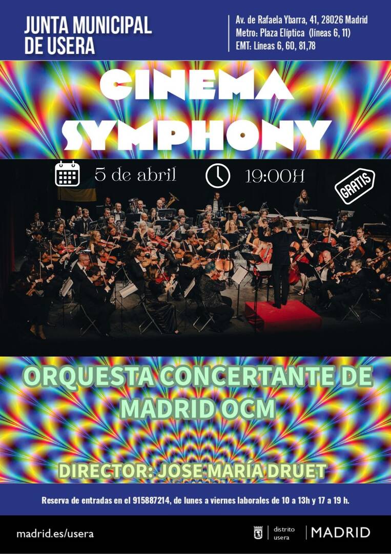 La Orquesta Concertante de Madrid está especializada en bandas sonoras de películas, musicales y videojuegos y versiones de temas pop y rock, y este próximo sábado 5 de abril ofreceremos un concierto gratuito, a las 19:00h. en el Auditorio de la Junta Municipal de Usera.