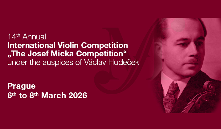 Via musica ad beatum z.s. y Tanja Classic s.r.o. en cooperación con la Escuela Secundaria de Música de Praga presentan el 14º Concurso Internacional Anual de Violín “Concurso Josef Micka” bajo los auspicios de Václav Hudeček.